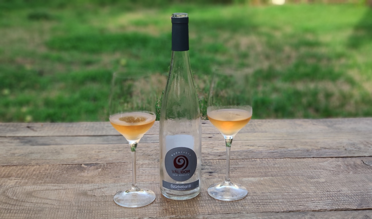 A 2019-es Válibor Szürkebarát 36 órán keresztül volt héjon áztatva, ezt követően felér hordóba másik felét pedig tartályban erjedt tovább 7-8 hónapig. Illatában találkozhatunk őszibarackkal,citromfűvel, de vérnarancs is gyakori látogató. Rozéra emlékeztető színe,gyümölcsös illat és ízvilága kiegészülve Badacsonyra jellemző ásványos lecsengéssel.